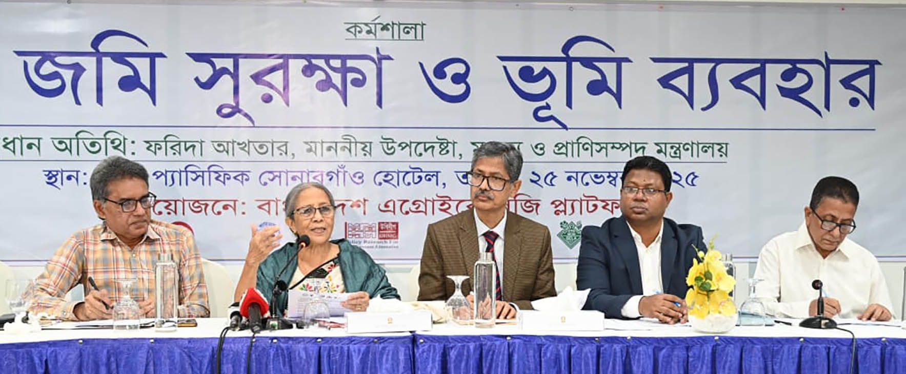 আজ প্যান প্যাসিফিক সোনারগাঁও হোটেলে অনুষ্ঠিত ‘কৃষি জমি সুরক্ষা ও ভূমি ব্যবহার’ -শীর্ষক জাতীয় কর্মশালায় প্রধান অতিথির বক্তব্যে তিনি এ কথা বলেন। কর্মশালাটি আয়োজন করেছে বাংলাদেশ অ্যাগ্রোইকোলজি প্ল্যাটফর্ম।