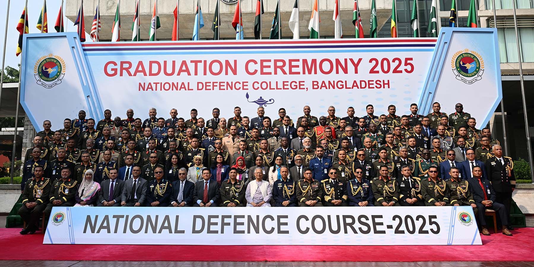 স্নাতক সম্পন্ন করা অফিসারদের অভিনন্দন জানিয়ে প্রধান উপদেষ্টা বলেন, ‘আজকের গ্র্যাজুয়েশন আপনার জীবনের একটি গুরুত্বপূর্ণ মাইলফলক। ন্যাশনাল ডিফেন্স কোর্স এবং আর্মড ফোর্সেস ওয়ার কোর্স সফলভাবে সম্পন্ন করা সত্যিই একটি বড় অর্জন।’