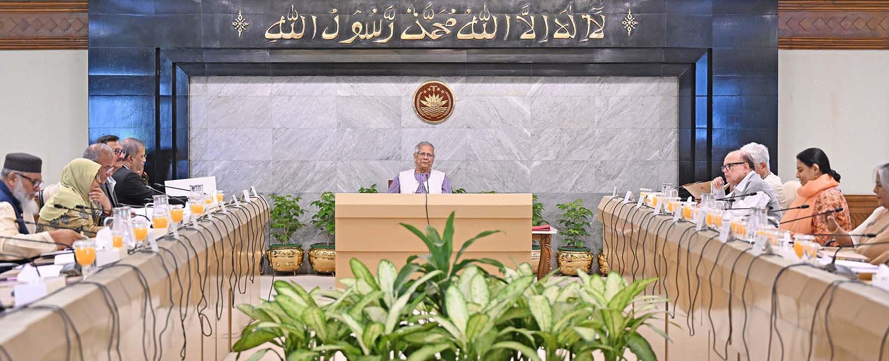 ধর্ম উপদেষ্টা এএফএম খালিদ হোসেন মোনাজাত পরিচালনা করেন। উল্লেখ্য, প্রধান উপদেষ্টা অধ্যাপক মুহাম্মদ ইউনূসের সভাপতিত্বে আজ শনিবার প্রধান উপদেষ্টার কার্যালয়ে উপদেষ্টা পরিষদের একটি বিশেষ সভা অনুষ্ঠিত হয়েছে।