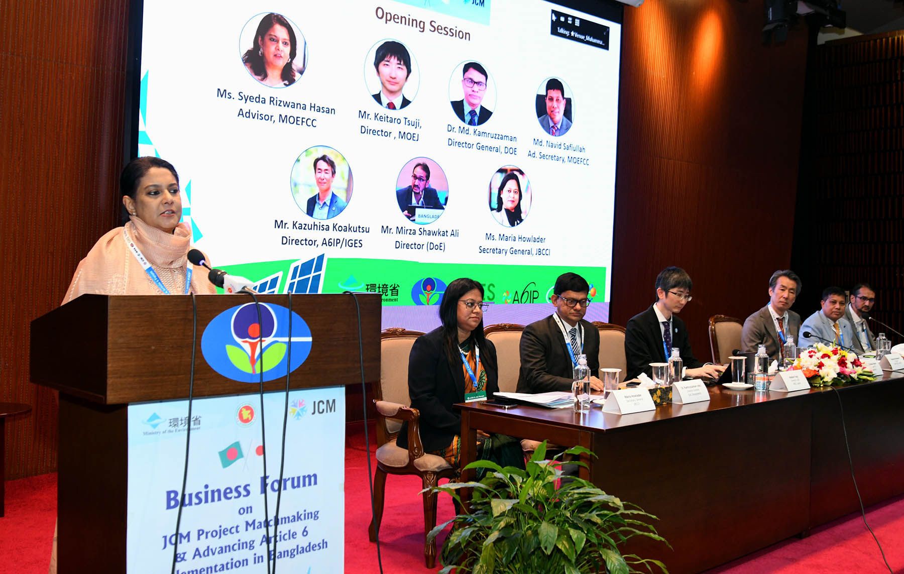 অনুষ্ঠানে উপদেষ্টা সৈয়দা রিজওয়ানা হাসান এবং জাপানের পরিবেশ মন্ত্রণালয়ের জেসিএম অফিসের পরিচালক কেইতারো তসুজি Article 6 Guidebook for Private Sector এর যৌথ উদ্বোধন করেন, যা IGES–এর কারিগরি সহায়তায় প্রণীত। এই গাইডবুকের মাধ্যমে ব্যবসাপ্রতিষ্ঠানগুলো বিনিয়োগযোগ্য প্রশমন প্রকল্প চিহ্নিত করা, আন্তর্জাতিক অংশীদারিত্ব তৈরি এবং ভবিষ্যৎ কার্বন বাজারে অংশগ্রহণের সুযোগ পাবে।
