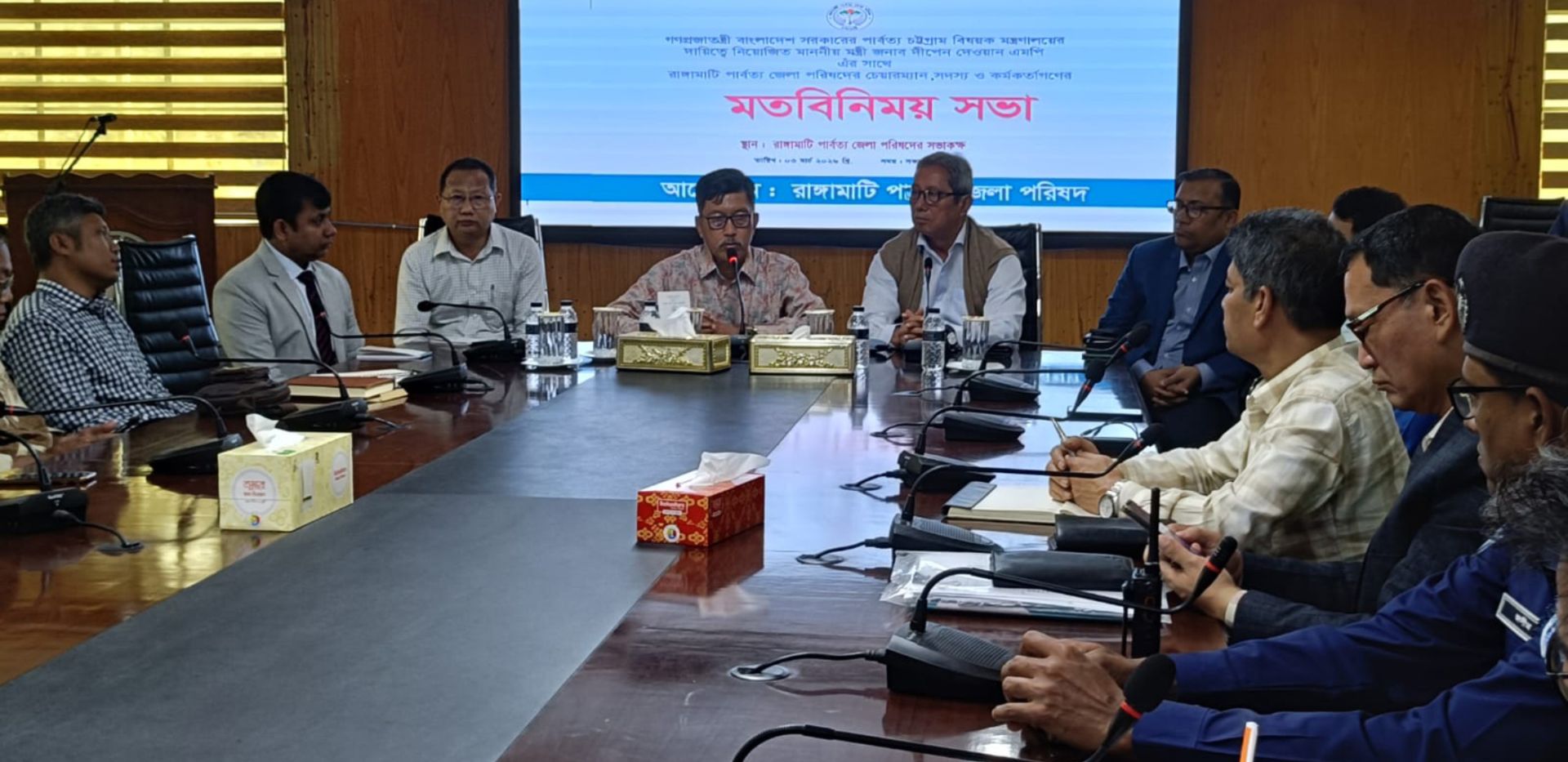 রাঙ্গামাটি পার্বত্য জেলা পরিষদের চেয়ারম্যান কৃষিবিদ কাজল তালুকদারের সভাপতিত্বে অনুষ্ঠিত সভায় অন্যান্যের মধ্যে আরো উপস্থিত ছিলেন পার্বত্য চট্টগ্রাম বিষয়ক মন্ত্রণালয়ের যুগ্ম সচিব কংকন চাকমা, পার্বত্য চট্টগ্রাম উন্নয়ন বোর্ডের ভাইস চেয়ারম্যান শেখ ছালেহ্ আহাম্মদ, রাঙ্গামাটি জেলা পরিষদের মুখ্য নির্বাহী কর্মকর্তা খোন্দকার মোহাম্মদ রিজাউল করিম, রাঙ্গামাটি জেলা পরিষদের সদস্য প্রতুল চন্দ্র দেওয়ান, বরুন বিকাশ দেওয়ান, হাবিব আজম, মিনহাজ মুরশিদ, নাইউপ্রু মারমা, সাগরিকা রোয়াজা, বৈশালী চাকমা ও দয়াল দাশ প্রমুখ।