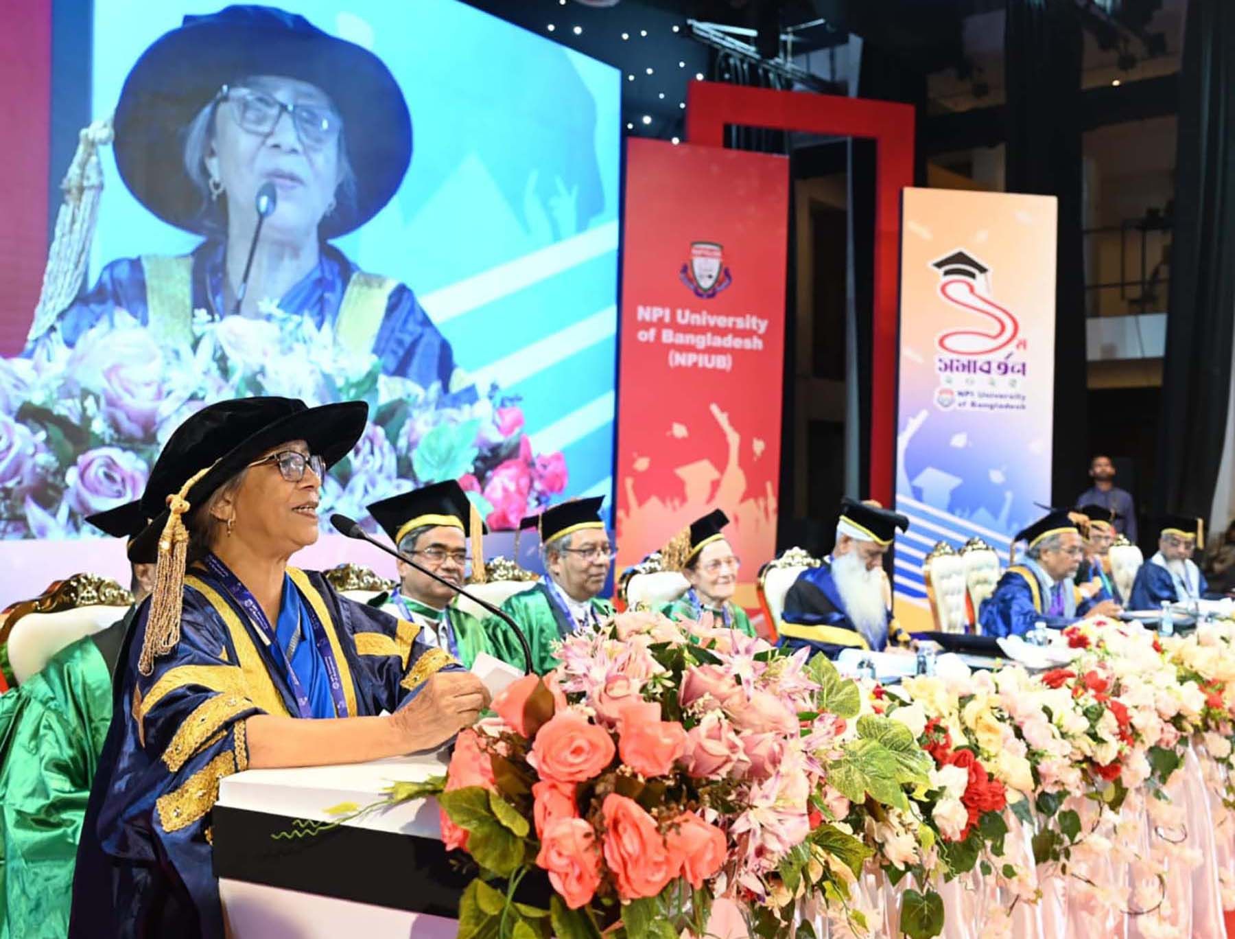 উপদেষ্টা বলেন, এনপিআই ইউনিভার্সিটির প্রথম সমাবর্তন বিশ্ববিদ্যালয়টির একটি গুরুত্বপূর্ণ মাইলফলক। শিক্ষার্থীদের উদ্দেশে উপদেষ্টা বলেন, ‘তোমরা নতুন বাংলাদেশের জন্ম দিয়েছো। দেশের জন্য নিষ্ঠা ও দায়িত্বশীলতার সঙ্গে কাজ করতে হবে তোমাদের।’ তিনি আরো বলেন, বিশ্ববিদ্যালয়ে সান্ধ্যকালীন কোর্স চালুর ফলে কর্মজীবীরা বিভিন্ন বিষয়ে উচ্চশিক্ষা গ্রহণের সুযোগ পাচ্ছেন।