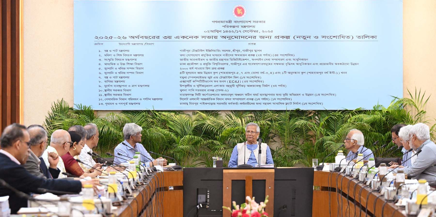 সেগুলো হল: ফসলের উৎপাদন ব্যয় জরিপ-২০২৫ প্রকল্প; সুনামগঞ্জ জেলার দিরাই উপজেলায় মৎস্য অবতরণ কেন্দ্র স্থাপন (২য় সংশোধিত) প্রকল্প; পার্বত্য চট্টগ্রাম অঞ্চলে মৎস্যসম্পদ উন্নয়ন (২য় সংশোধিত) (অসমাপ্ত রেখে সমাপ্তকরণ) প্রকল্প; সাসটেইনেবল কোস্টাল এন্ড মেরিন ফিশারিজ প্রজেক্ট প্রকল্প; ন্যাশনাল হার্ট ফাউন্ডেশনের মেডিকেল যন্ত্রপাতি আধুনিকীকরণ ও বিশ্বমানে উন্নীতিকরণ; বাংলাদেশের বীমা খাত উন্নয়ন প্রকল্প (২য় সংশোধিত); পিরোজপুর জেলায় নতুন সার্কিট হাউজ নির্মাণ প্রকল্প; রামু সেনানিবাসে পানির সমস্যা সমাধানকল্পে একটি পানি বিশুদ্ধকরণ প্লান্ট ব্যবস্থাকরণ প্রকল্প; সিলেট সেনানিবাসে অফিসার্স বাসস্থান নির্মাণ প্রকল্প; উন্নত প্রযুক্তি নির্ভর পাট ও পাটবীজ উৎপাদন এবং সম্প্রসারণ (২য় সংশোধিত) এবং চাঁপাইনবাবগঞ্জ জেলার ২য় মহানন্দা সেতু সংলগ্ন এলাকায় পর্যটন কেন্দ্র নির্মাণ (২য় সংশোধিত) প্রকল্প।